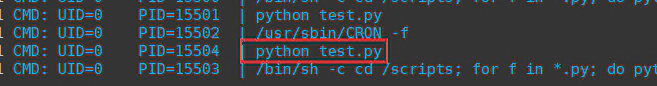 发现test.py是root(uid=0)在执行,同时当前用户可以读写test.py