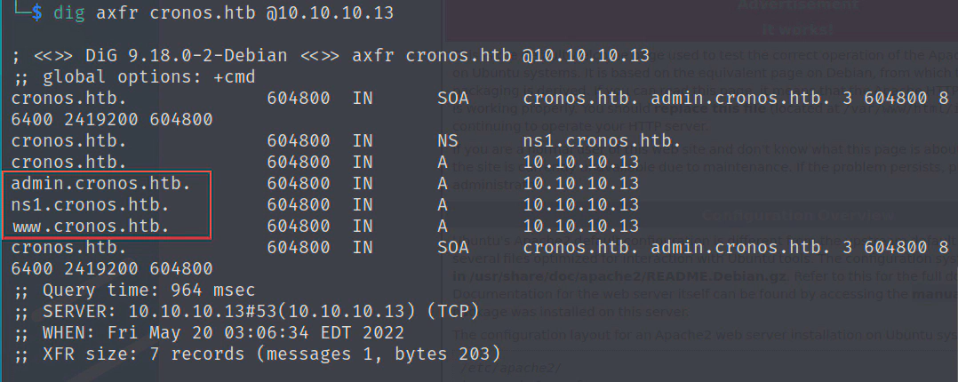 13.10.10.10.in-addr.arpa name = ns1.cronos.htb.