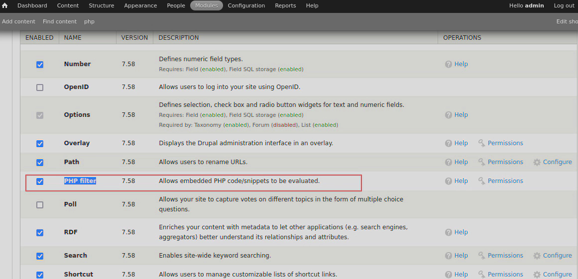 发现可以启动PHP filter模块