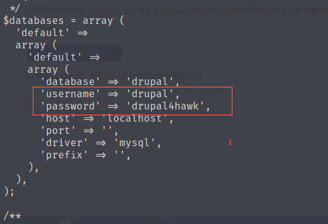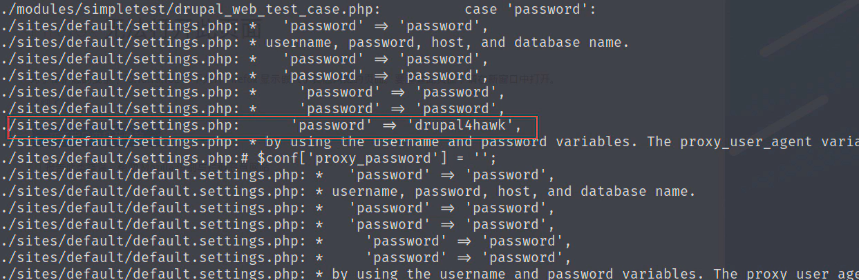 敏感信息收集,从代码中找到了密码 drupal4hawk