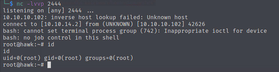 daniel@hawk:~$ chmod +x /home/daniel/shell
