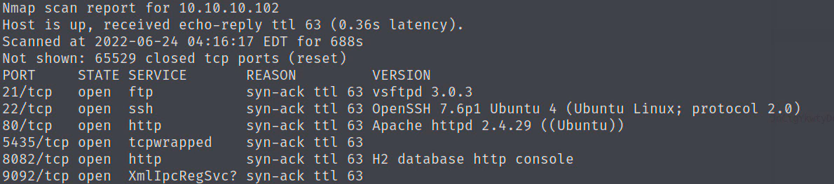 nmap -T4 -p- -vv -sV 10.10.10.102