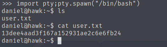 daniel@hawk:~$ cat /home/daniel/shell