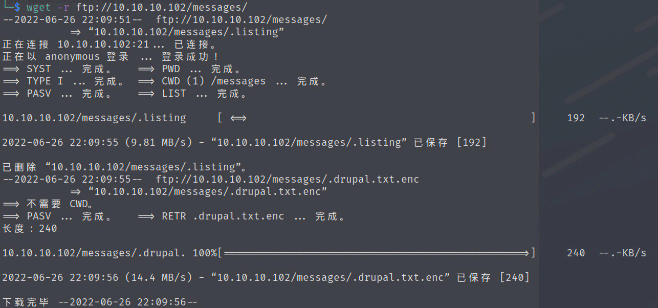 wget -r ftp://10.10.10.102/messages/