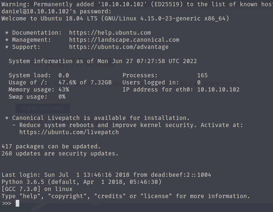 除了mysql,可能其他用户也使用了这个密码,最后试到ssh用户密码是daniel/drupal4hawk