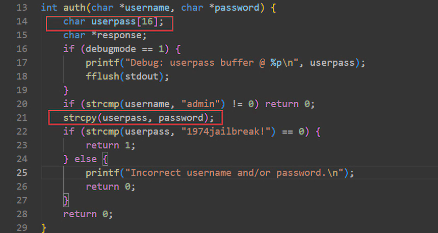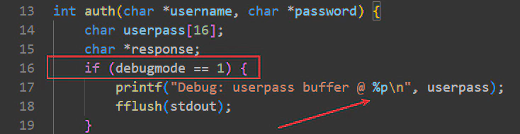 printf("Debug: userpass buffer @ %p\n", userpass);