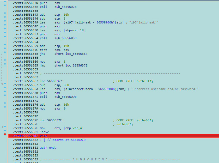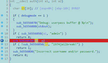 if (strcmp(userpass, "1974jailbreak!") == 0) {