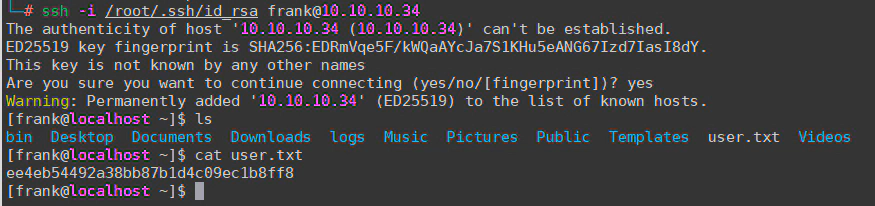 ssh -i /root/.ssh/id_rsa frank@10.10.10.34