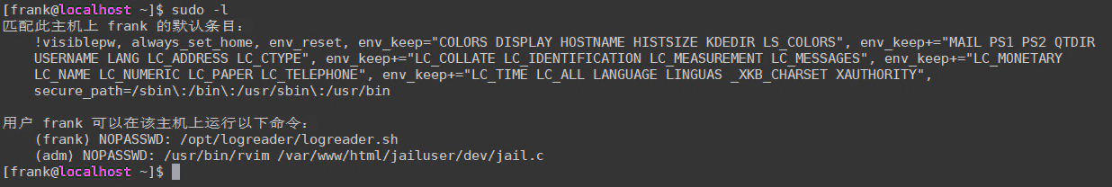 frank可以以adm身份运行rvim,rvim是vim的一种