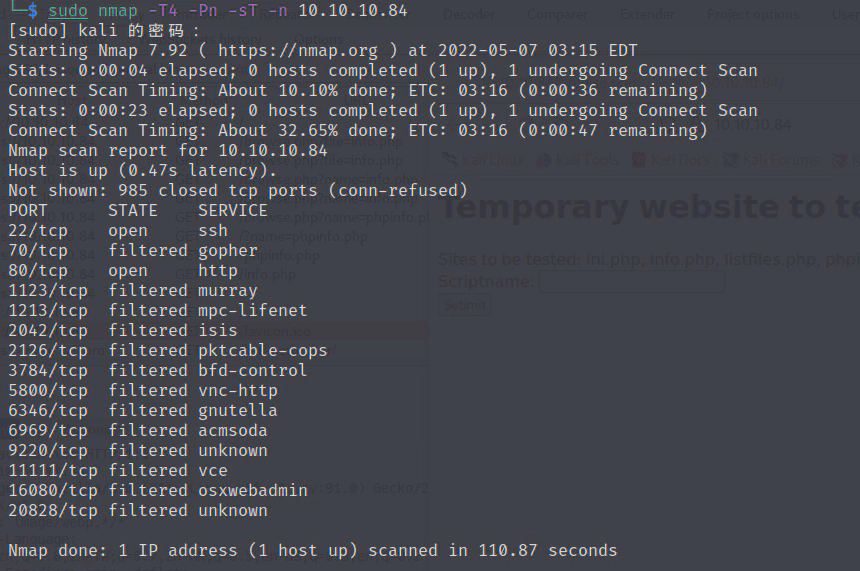 sudo nmap -T4 -Pn -sT -n 10.10.10.84
