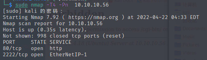 sudo nmap -T4 -Pn 10.10.10.56