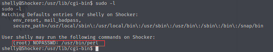 使用 sudo -l 查看得知有权限使用 sudo 运行 /usr/bin/perl